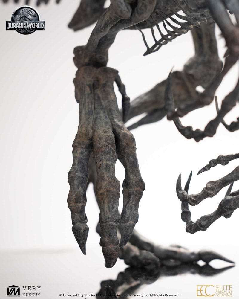 Elite Creature ist stolz darauf, das Indominus-Rex-Skelett aus Bronze vorstellen zu dürfen. Der ILM-Künstler Bitan hat das Skelett des Indominus Rex originalgetreu nachgebildet, dabei komplexe Details wiederhergestellt, die auf der Leinwand nicht zu sehen waren, und charakteristische Merkmale des Indominus hinzugefügt, darunter Teile seiner Haut und seine markanten Stacheln. Das Skelett ist sorgfältig aus hochwertiger Bronze mit einer Patina in Fossilienoptik gefertigt und auf einem Marmorsockel montiert. 1/12 Version Technische Daten: - Höhe: ca. 35 cm (13,8 Zoll) - Breite: ca. 107 cm (42,1 Zoll) - Tiefe: ca. 40 cm (15,8 Zoll) - Kunstbronze mit Marmorsockel - Auf Bestellung gefertigt Weltweit auf 30 Stück limitiert.