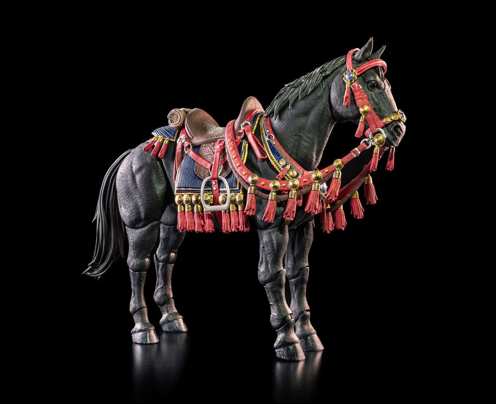 Skapular der Gruftbrecher war noch nie für seine Bescheidenheit bekannt und liebt Schönheit und Opulenz in allen Dingen. Manche in den Reihen der Söhne des Roten Sterns dachten, er sei verrückt geworden, als er seine Schatulle fast leerte, um sich ein Pferd zu kaufen, das er für würdig hielt, seinen Stand zu vertreten. Dieses Geflüster verstummte sofort, als der untote Attentäter das erste Mal auf seinem dunklen Einhorn Uumbra ritt. Ein mächtiges, magisches Wesen, dessen Existenz seit den frühesten Tagen des Reiches nur als Märchen angesehen wurde. Skapular prahlt gerne damit, dass er ein königliches Vermögen gezahlt hat, um sich das Einhorn von "jenseits der Gestade von Mythoss" zu sichern. Uumbras Magie ist mehr als nur ein Schaustück, denn sie hat Skapular in seiner Zeit als Anführer der Söhne des Roten Sterns geholfen, einige seiner waghalsigsten Kapriolen zu schlagen und einigen seiner heimlichen Anrufe zu entkommen. Four Horsemen Toy Design Studios präsentiert eine Reihe von großartigen Actionfiguren aus der Reihe "Mythic Legions". Jede Figur ist ca. 15 cm groß und kommt mit weiterem Zubehör in einer Blisterverpackung.