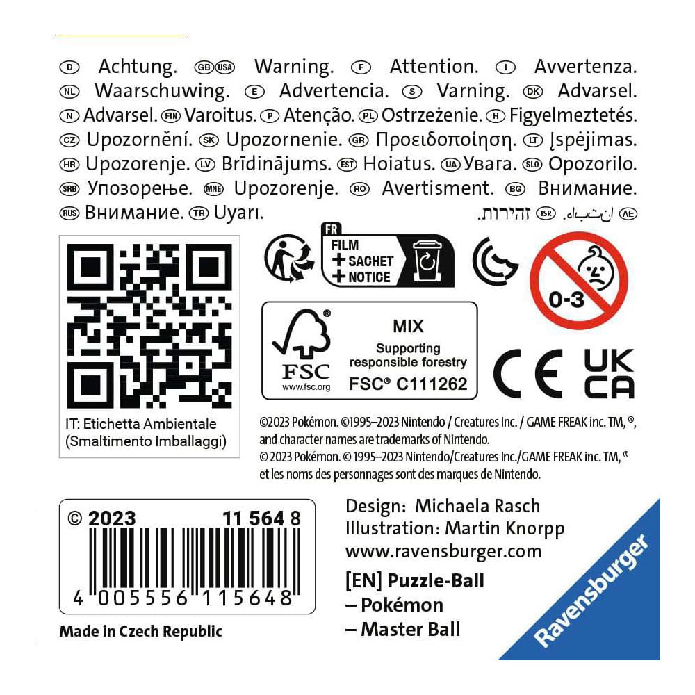 Pokémon Fans aufgepasst! Die beliebten Pokémon Pokébälle gibt es jetzt als 3D Puzzle-Ball! Neben dem Meisterball - [EN] Master Ball - gibt es zudem noch den Hyperball - [EN] Ultra Ball - ,den klassischen Pokéball und den Superball - [EN] Great Ball - als 3D Puzzle-Ball von Ravensburger.Aus Kunststoff-Puzzleteilen, die dank EasyClick Technology perfekt zusammen passen, entsteht dieser stabile 3D Puzzle-Ball. Die Nummerierung der Teile auf der Rückseite erleichtert das Vorsortieren und ermöglicht einfaches Puzzeln nach Zahlen. - 3D-Puzzle mit Easyclick-Technologie - Inkl. Aufsteller - 55 Teile - Durchmesser: 7 cm