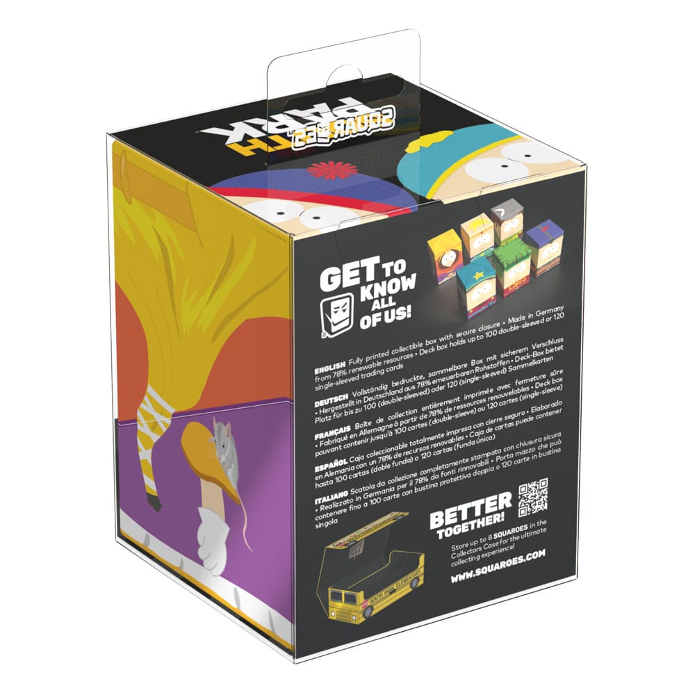 Sammelbare Box zur Aufbewahrung von TCG-Decks, Tabletop-Zubehör und/oder Sammlerstücken. Jeder Squaroe aus der South Park™-Edition bietet als Deck-Box benutzt Platz für bis zu 100 Spielkarten in doppelter Schutzhülle. Squaroes werden aus 78% erneuerbaren Rohstoffen hergestellt und passen perfekt in das separat erhältliche Collectors Case.