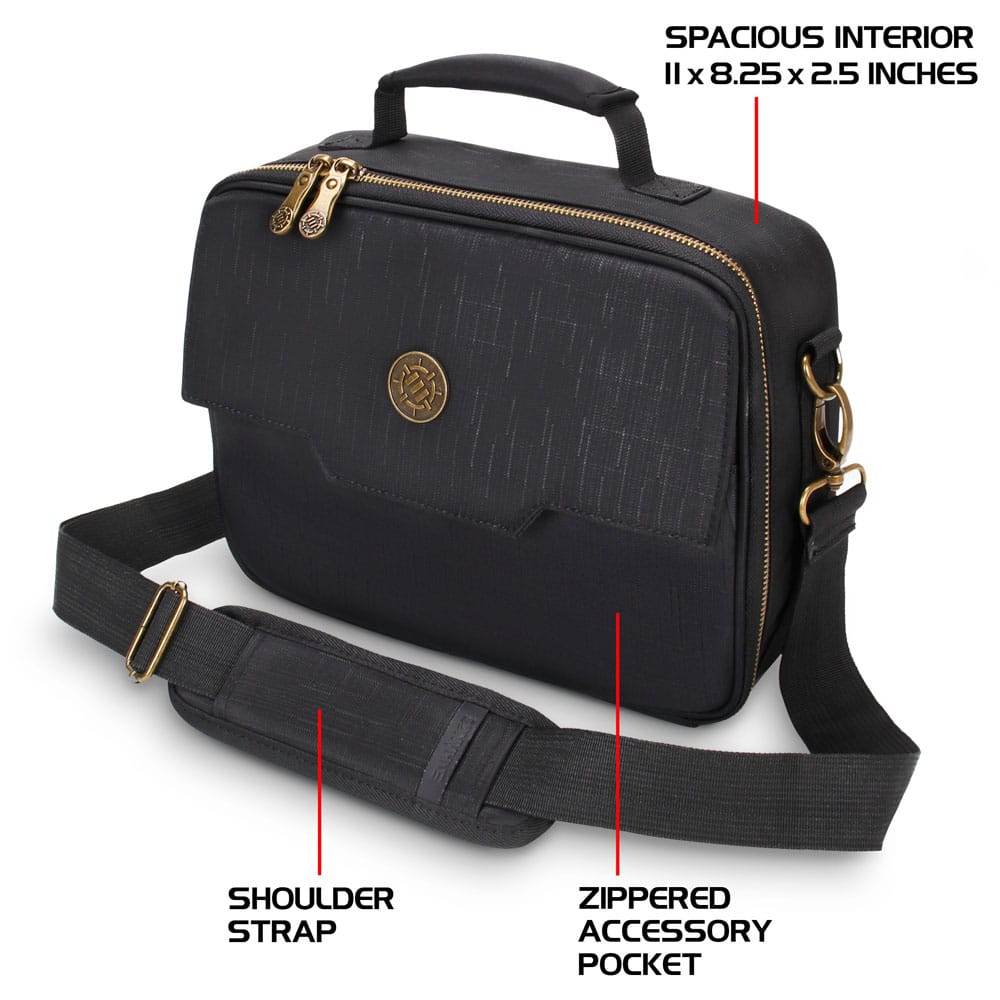 - organisiert deine Sammelkarten für Turniere und Events. - Reißverschlusstasche für Notizblöcke, Würfel, Token und Zubehör. - Maße: 279 x 229 x 89 mm