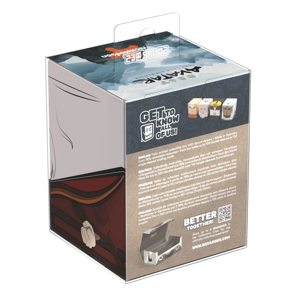 Sammelbare Box zur Aufbewahrung von TCG-Decks, Tabletop-Zubehör und/oder Sammlerstücken. Der Avatar Roku Squaroe aus der Avatar: The Last Airbender-Edition bietet als Deck-Box benutzt Platz für bis zu 100 Spielkarten in doppelter Schutzhülle. Squaroes werden aus 78% erneuerbaren Rohstoffen hergestellt und passen perfekt in das separat erhältliche Collectors Case.