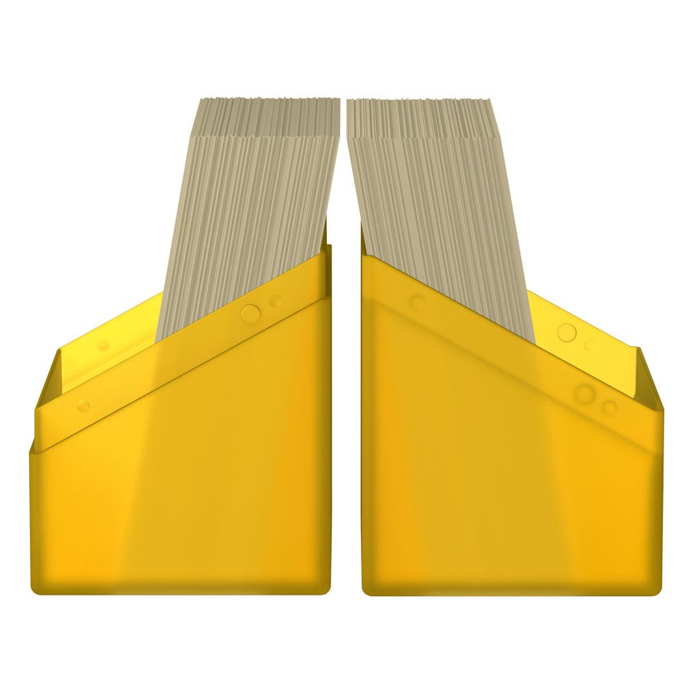 Die handliche, feste Kartenbox mit Soft-Touch-Oberfläche lässt sich besonders leicht öffnen und bietet Platz für bis zu 80 Karten (double-sleeved)1. Dank ihrem modularen Design passt sie perfekt in Flip'n'Tray und Arkhive Cases.