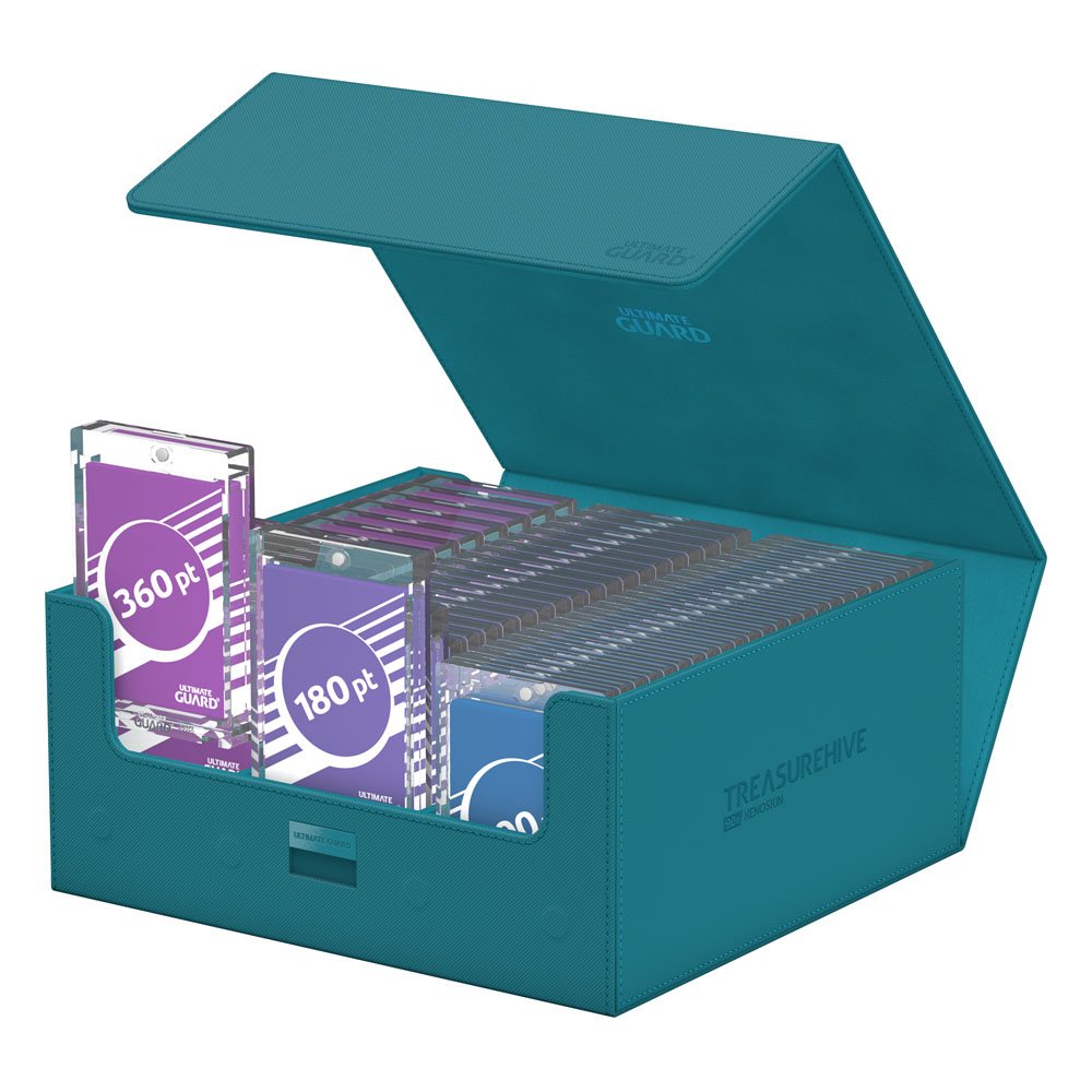 Das neueste Mitglied unserer Hive-Familie: das Treasurehive 90+! Speziell für die Aufbewahrung von bis zu 90 Ultimate Guard Magnetic Card Cases geeignet (mit 35pt). Alternativ kann diese elegante Schatzkiste auch über 370+ Toploader, 990 Karten (double-sleeved) und eine Vielzahl von Ultimate Guard-Deck Cases aufnehmen, um deine wertvollen Karten zu schützen. Schütze deine Schätze besser als jeder Pirat!